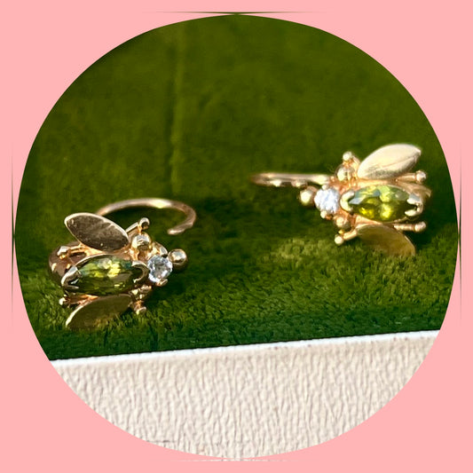 Vintage 18k Diamond and Peridot Fly Earrings