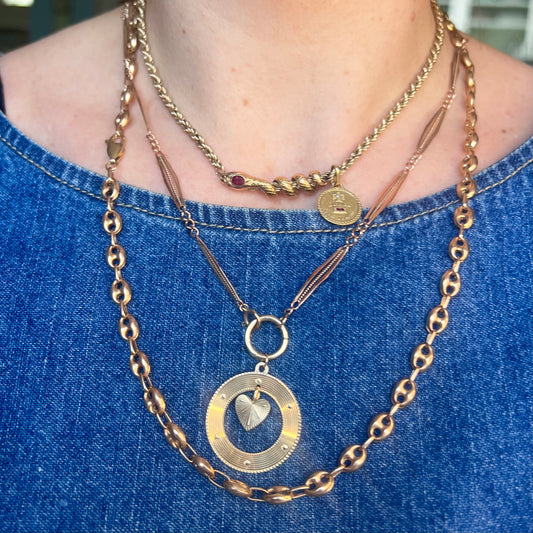 Vintage 14k Engine Turned Disc with Floating Heart