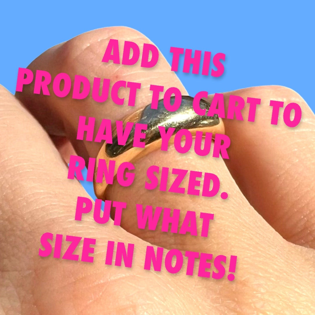 Need your ring resized? Add this product to your cart! Please put in the notes what size you wish!